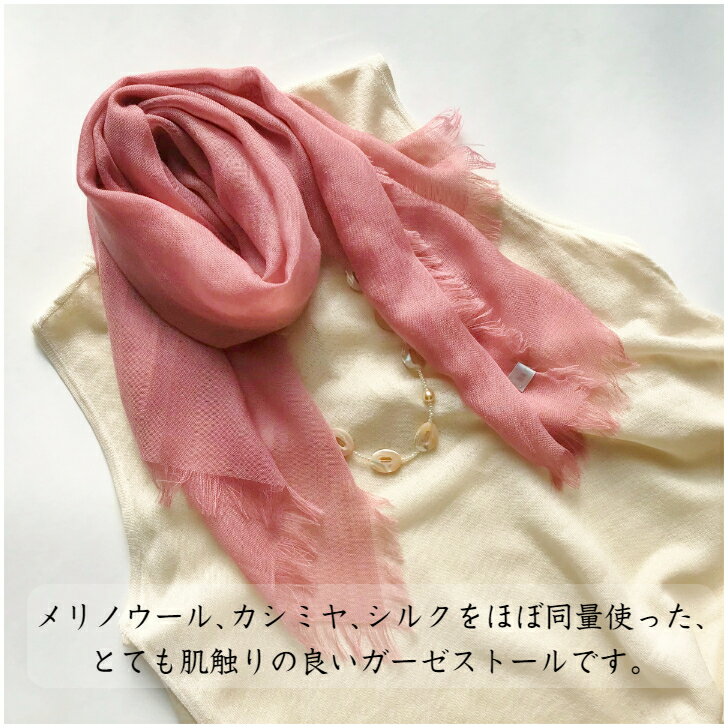 【harukii】カシミヤ シルク ウール 小振り 薄手 ガーゼ 日本製 高品質 春 秋 冬 上品 ギフト プレゼント 母の日 父の日 誕生日 ストール 軽い ピンク オレンジ ベージュ レディス メンズ クリスマス 肌に優しい柔らかさ 冷房対策 国産