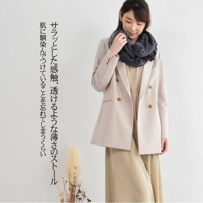 優しい光沢とヌメリ感のあるストールは、大判でも巻いたときにゴロンと大きくなることがなく使いやすい。