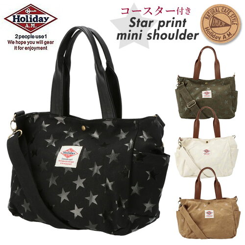 ショルダーバッグ レディース 斜めがけ カジュアル 好評 2way メンズ シンプル 星 スター 大人 かわいい トートバッグ 小さめ 通勤 通学 ママバッグ マザーズバッグ 旅行 おでかけ Holiday A.M. ホリデーエーエム KB116 スタープリントミニショルダー