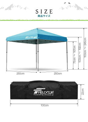 ワンタッチタープテント 2.5m×2.5m サイドシート1枚付 横幕セット 軽量 アルミ テント タープ 250cm ワンタッチ ワンタッチテント ワンタッチタープ 大型 UV加工 撥水 ベンチレーション 日よけ イベント アウトドア キャンプ FIELDOOR 1年保証 ★[送料無料][あす楽]