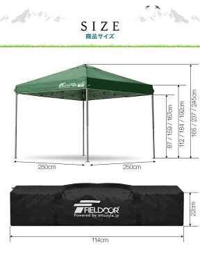 ワンタッチタープテント 2.5m×2.5m 軽量アルミ 強化版フレーム テント タープ 250cm ワンタッチ ワンタッチテント ワンタッチタープ 大型 UV加工 撥水 ベンチレーション 収納バッグ付 日よけ イベント アウトドア キャンプ BBQ FIELDOOR 1年保証 ■[送料無料][あす楽]