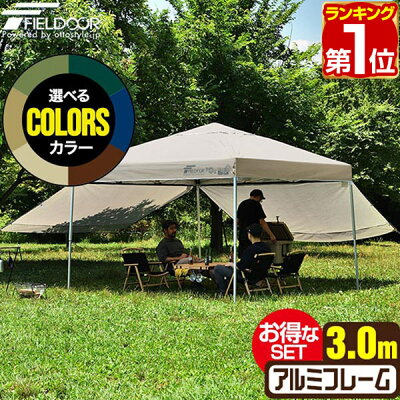 【楽天1位】ワンタッチタープテント 3m×3m サイドシート2枚付 横幕セット 軽量 アルミ テント タープ 300 3.0m ワンタッチ ワンタッチテント ワンタッチタープ 大型 UV加工 撥水 ベンチレーション 日よけ イベント アウトドア FIELDOOR 1年保証 ★[送料無料][あす楽]
