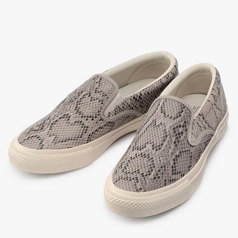 アッパー全面に、パイソン柄のプリントを施したスエードを採用し、ホワイトソールを合わせた、印象的でありながらもシックな一足。
