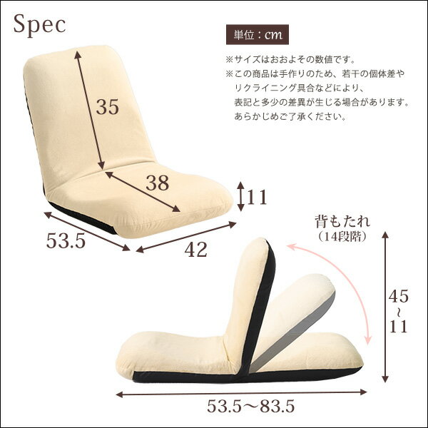 床での利用はもちろん、椅子やソファに合わせて利用できます!肌ざわりのいい柔らかな起毛タイプとサラリとしたメッシュタイプからお選びいただけます! 商品名美姿勢習慣、コンパクトなリクライニング座椅子(Mサイズ) サイズ外寸:(約)幅42x奥行き53.5〜83.5x高さ11〜45cm(座面高:11cm) ※商品重量:(約)3kg 材質表地:ポリエステル 構造部材:スチールパイプ クッション材:ウレタンフォーム 備考・完成品でのお届けです。