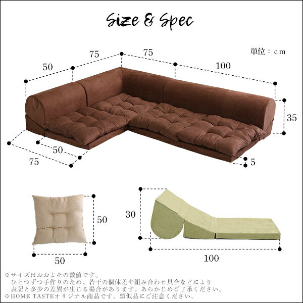 お部屋を広く見せる、フロアタイプソファ!1P、2Pは背もたれリクライニング機能付き!3つのパーツを自由に入れ替え!確かな品質・安心の「日本製」肌ざわりのよいスエード調生地4カラーからお選びいただけます! 商品名3人掛けフロアコーナーソファ サイズ1人掛け:(約)幅50x奥行き75x高さ35cm 2人掛け:(約)幅100x奥行き75x高さ35cm コーナー:(約)幅75x奥行き75x高さ35cm 座面高:5cm(クッション無) クッション:(約)幅50x高さ50cm ※商品重量:(約)17kg 材質ソファ中材:ウレタンフォーム(モールド成型) クッション中材:ポリエステル100%(ポリエステル綿) 生地:ポリエステル100 備考完成品でのお届けです。