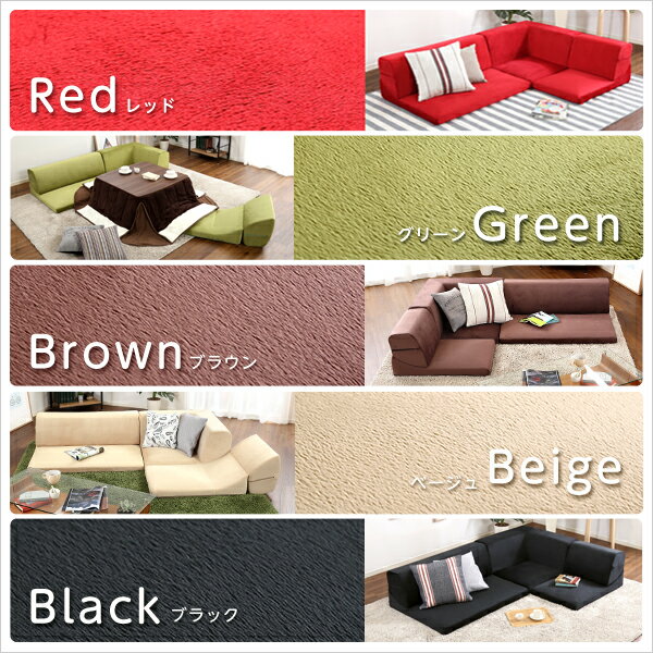 レッド グリーン ブラウン ベージュ ブラック 組み換え自由 ヘタリに強い リクライニング こたつソファ ごろ寝 TVソファー スマホ モダン ミッドセンチュリー レトロ 北欧 スタイリッシュ シック ロースタイル フロアソファ フロアーソファ やや硬め